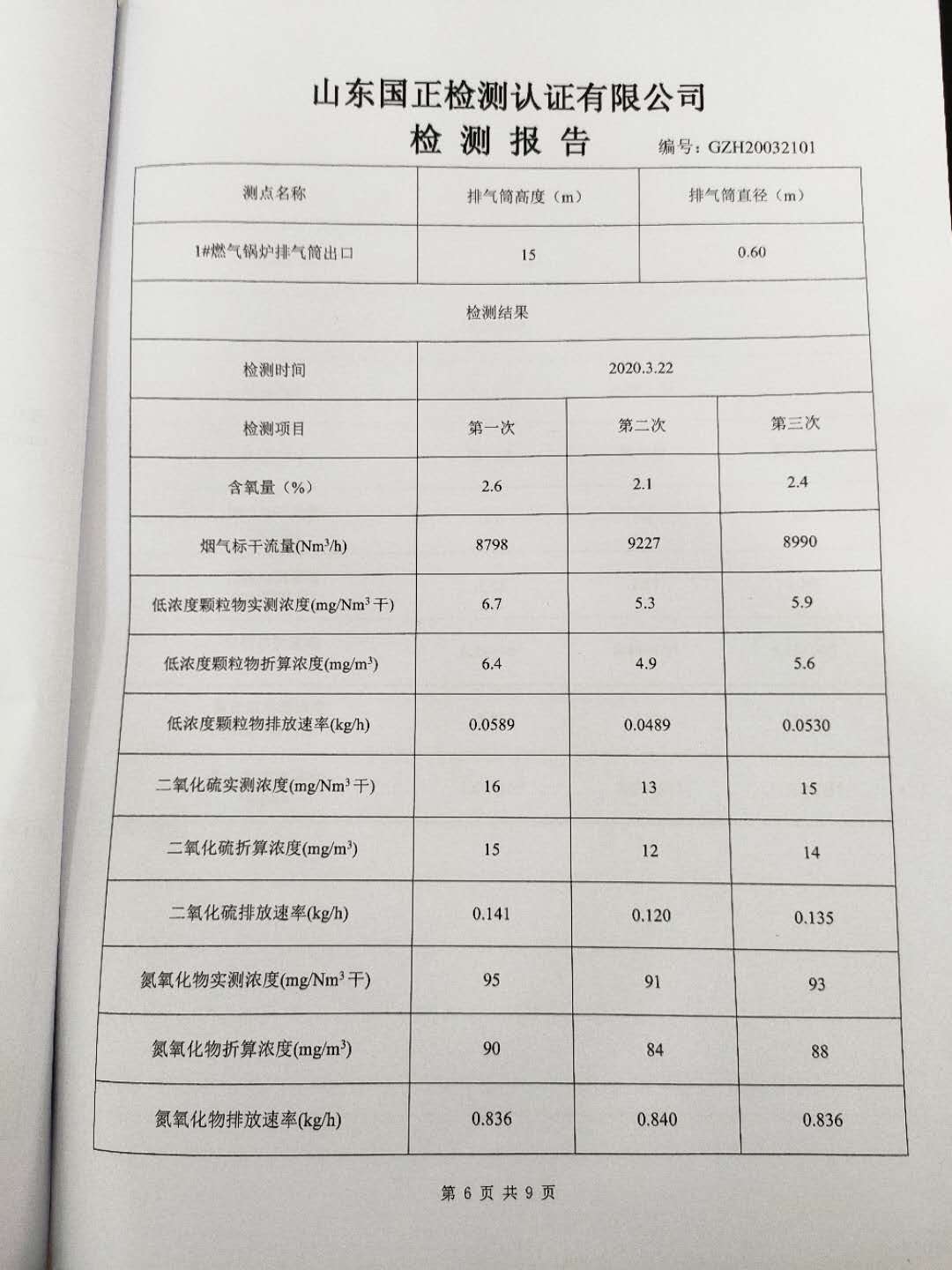 | 內容 | 排放物種類及性質:二氧化硫、氮氧化物 總量控制指標:二氧化硫19.72噸/年,氮氧化物17.98噸/年 年排放量:二氧化硫19.72噸/年,氮氧化物17.98噸/年 日排放量:二氧化硫65.7kg,氮氧化物59.9kg 排放濃度:二氧化硫200mg/立方米,氮氧化物250mg/立方米 排放方式:間歇 排放去向:大氣 | |||