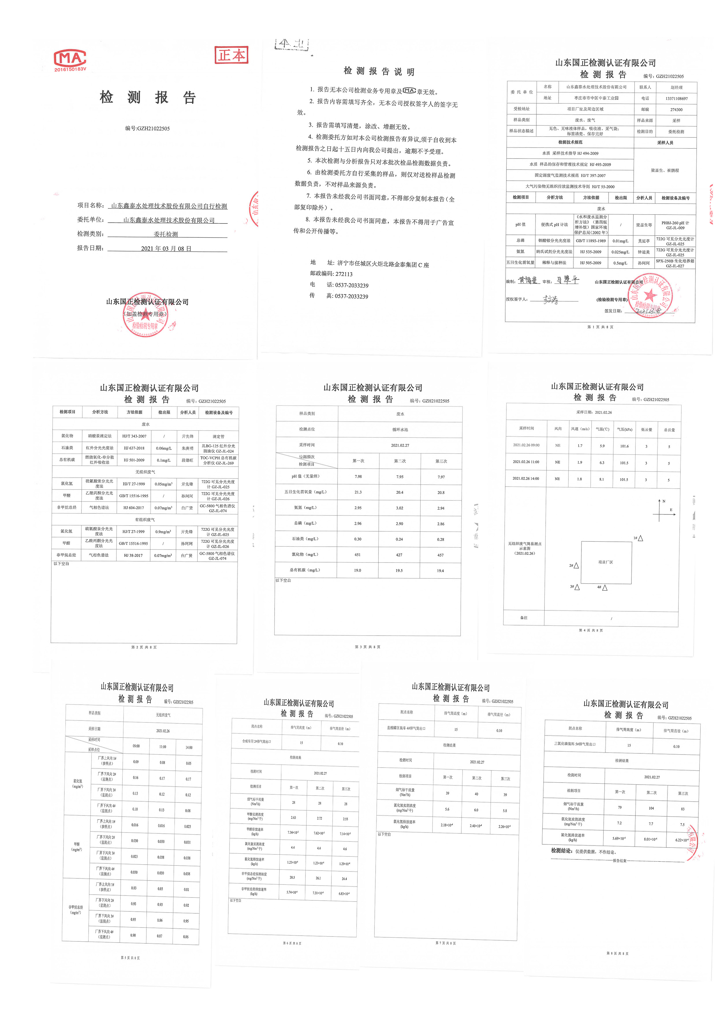 山東鑫泰水處理技術股份有限公司2021年環保監測公示
